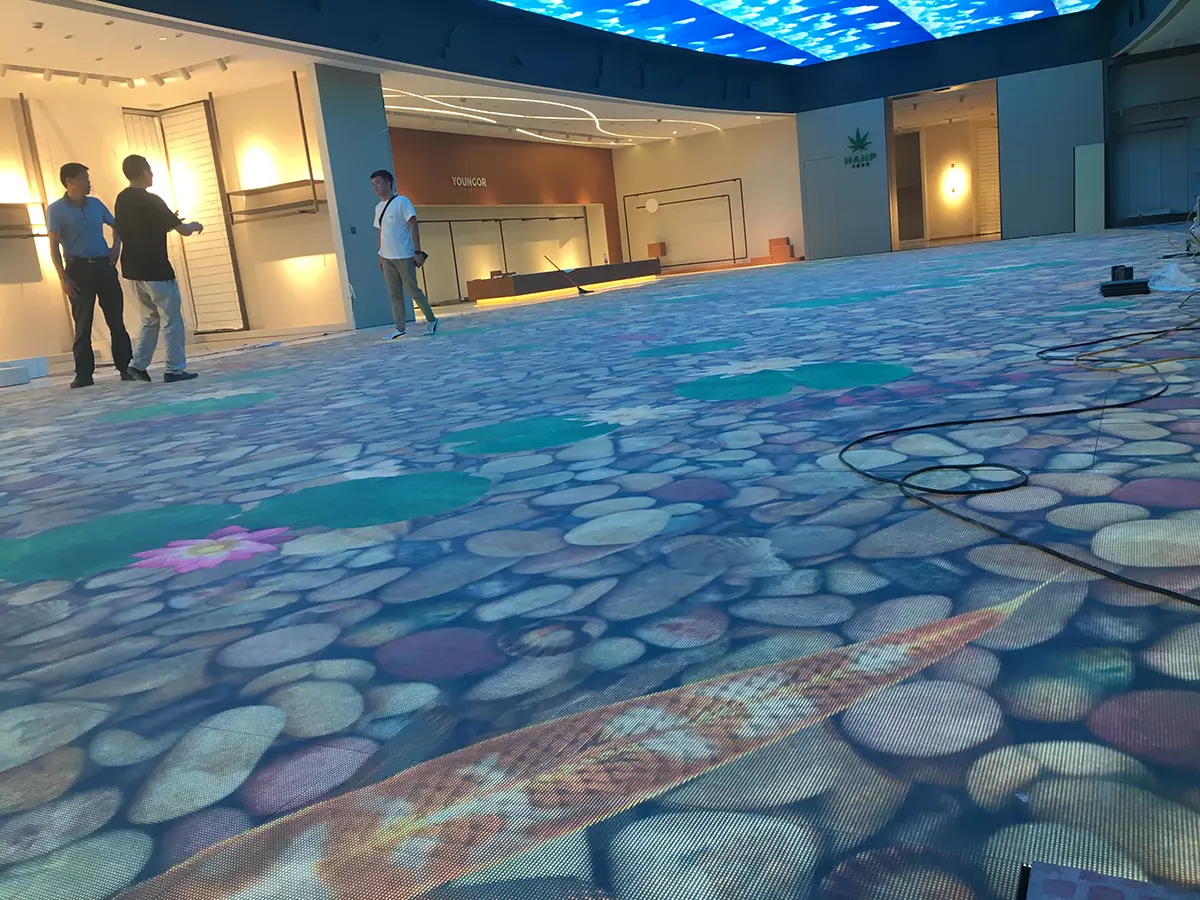 Indoor P3.91 240sqm Interactive LED Video Floor and 240sqm Skyline LED Screens for Fujian Cabinet Size: 500x500,IP Rating: IP45, indoor interactive LED floor screeen,brightness: 1200nits, Max load-bearing: 2000Kg Ningbo, China P3.91 Interactive LED Floor 240sqm, P3.91 Skyline LED Screens Auguest, 2019 indoor P3.91 Related Products Magical Carpet LED Screen The Magical Carpet LED Screen is our company's latest development of a thinne View More →